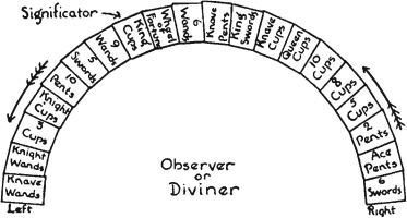 The opening of chess play is known under the technical title of "Awakening the Abodes." As already stated the game is set for four players, each of whom works the pieces at each of the four angles, playing in rotation. Should the game be used for the purposes of divination, the first player would be the querent, the one asking the question, or the person representing the matter about which information is required. This first player chooses which angle of the board he will play from, bearing in mind the divinatory qualities of the elements as set forth in the documents on Geomancy and Tarot.